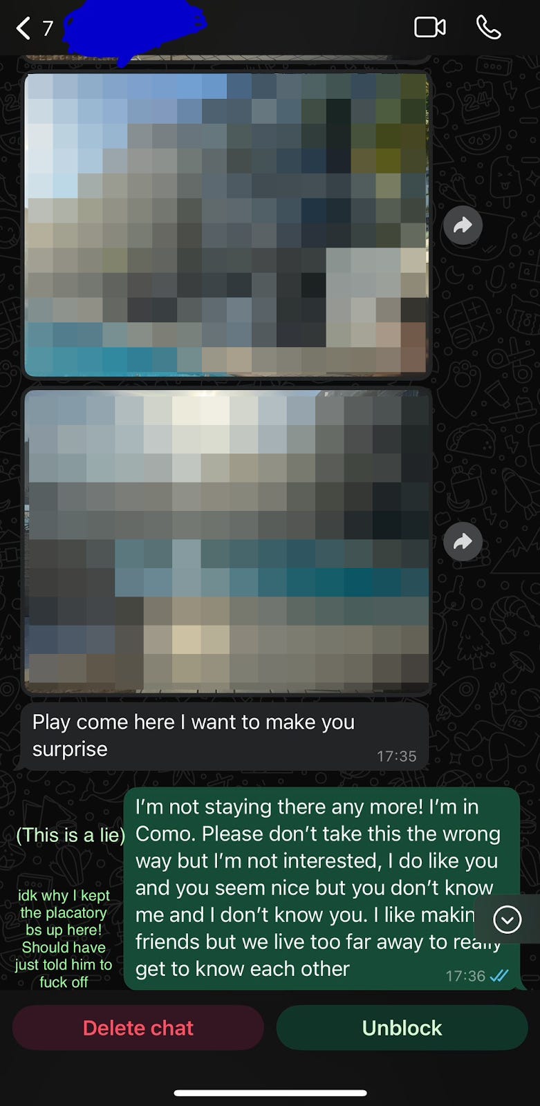 There are more daunting people, too. I was followed in a park by a man who wouldn’t leave until I gave him my number, and who then walked me back to a hotel that I pretended was my friend’s. He wasn’t fooled, and showed up there the next day–thankfully, after I’d already left.